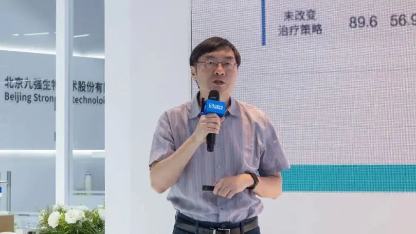 隨后,胡志遠教授繼續(xù)為大家?guī)砭实腃TC檢測內(nèi)容——“腫瘤捕手-外周血循環(huán)腫瘤細胞檢測”的宣講,與大家近距離交流。醫(yī)學檢驗是醫(yī)生的眼睛,而液體活檢是新的醫(yī)學檢驗方向,被麻省理工科技展望(MIT Technology Review)評為未來醫(yī)學十大行業(yè)顛覆技術。液體活檢里CTC作為門檻較高、技術前沿、信息完整的腫瘤檢測新型標志物,堪稱皇冠上的明珠。中科納泰TUMORFISHER?技術為大家?guī)砀嗯R床應用驚喜,尤其是在乳腺癌術后MRD(微小殘留病灶)檢測中展現(xiàn)了“預防復發(fā)轉(zhuǎn)移”和“指導治療決策”的臨床價值,這是歷時五年,臨床界期待已久的數(shù)據(jù)。九強展臺圍滿了觀眾,大家都對新品表現(xiàn)出了濃厚的興趣,聽完胡教授的講解,眾人受益匪淺。
