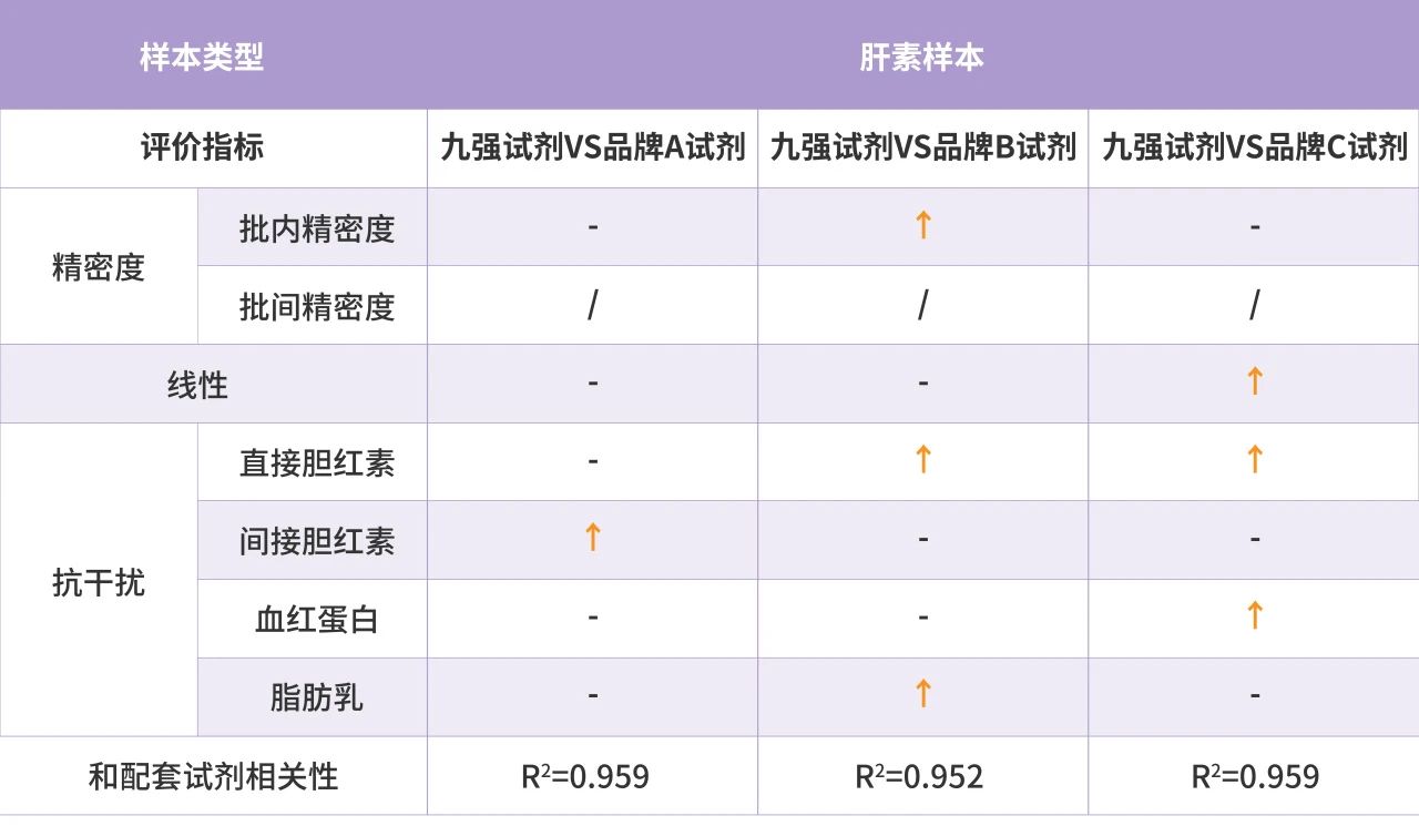 九強(qiáng)直接膽紅素可以做到10mg/dl,血紅蛋白可以做到125mg/dl,而對(duì)照試劑分別只能做到5mg/dl和不到125mg/dl,在直接膽紅素和血紅蛋白的抗干擾方面均優(yōu)于原裝配套試劑。