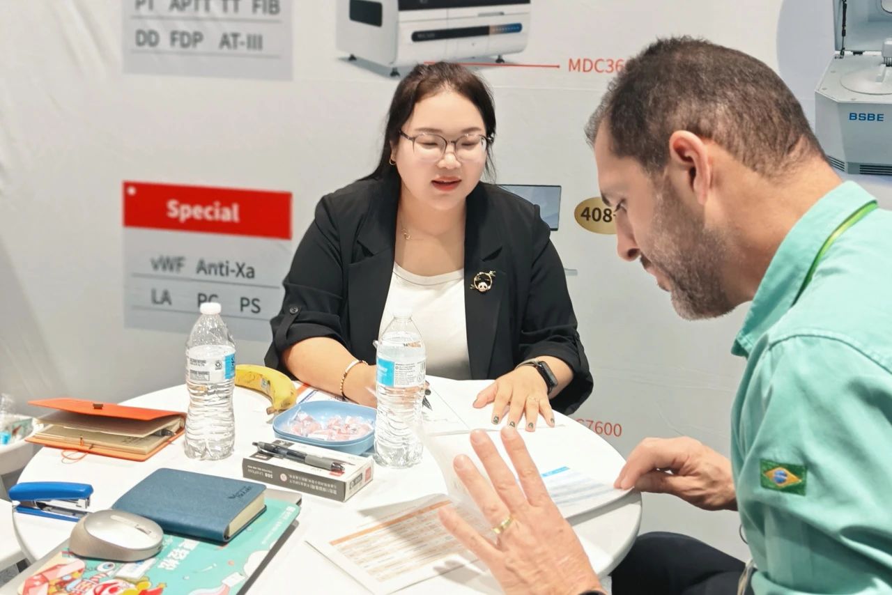 九強生物的產品以精準的檢測性能、高效的工作效率和可靠的質量贏得了廣泛贊譽。展會現場,九強生物的展位始終人頭攢動,來自世界各地的參觀者紛紛駐足,與公司專業(yè)團隊深入交流,了解產品的特點和優(yōu)勢。九強團隊以熱情、專業(yè)的態(tài)度接待每一位參觀者,詳細介紹產品的技術亮點和臨床應用經驗,與客戶分享九強生物在體外診斷領域的創(chuàng)新理念和實踐成果。通過深入的交流,九強生物不僅讓世界更好地了解了中國體外診斷技術的發(fā)展水平,也進一步拓展了國際業(yè)務交流渠道,與眾多潛在客戶建立了緊密聯(lián)系。